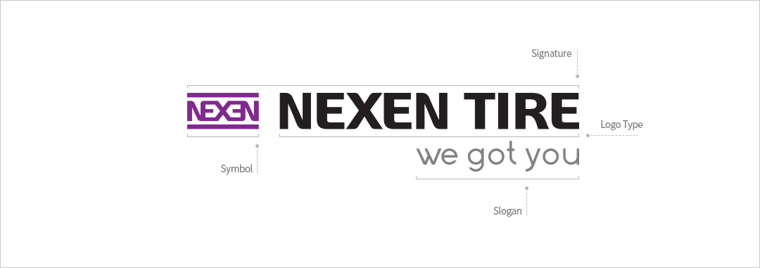 The signature is the business indication system that directly expresses the image of NEXEN through the organic combination of the symbol mark and logo type.