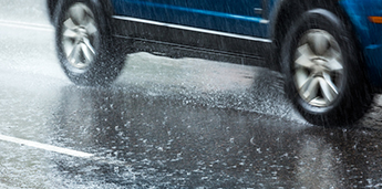 The road on a rainy day is slippery; thus, a driver should reduce speed depending on weather and road condition.