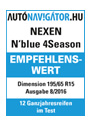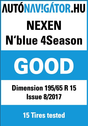 The new Nexen N'BLUE 4Season receive in the Hungarian test presentable test results. It outperformed more expensive all season tires on dry and wet asphalt and also showed competitive performance on wet and dry braking.
