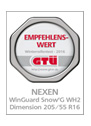 The GTÜ tested in the dimension 205/55R16. All in all NEXEN TIRE meets all challenges in a strong benchmark test with the competitors. Therefore GTÜ honor Winguard Snow'G WH2 with "Recommendable".