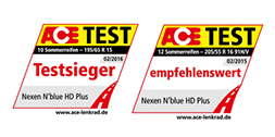 In the 2016 Summer Tire Test conducted by ACE Lenkrad, the N'BLUE HD Plus was rated "Test Winner" and "Very Recommendable" for its excellent handling, breaking, and hydroplaning resistance.