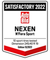 In the 2021 summer tire test conducted by GTÜ (Gesellschaft für Technische Überwachung) together with ACE (Auto Club Europa) and Austrian partner ARBÖ, the NEXEN N'FERA Sport has been named "Test Winner" and rated "Highly Recommended" by demonstrating excellent driving characteristics. The NEXEN N'FERA Sport was the best performing tyre on dry roads and convinced the experts due to its fair price.