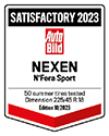 N'FERA Sport was ranked 17 and rated "Satisfactory" from among 50 brands in AutoBild's 2023 Summer Tire Test. In particular, N'FERA Sport was recognized for its short braking distance, quiet rolling noise on dry roads, and reasonable price.