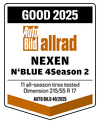 The N'BLUE 4Season came 15th out of 32 tires in AutoBILD's all-season tire test, earning a "Satisfactory" rating. AutoBild's tire testers attested good results in braking on dry roads as well as low noise development for more driving comfort. The all-rounder N'BLUE 4Season also scored points for its high mileage and achieved the second-best result in the price/performance ratio at 1,000 km category.