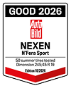 N'FERA Sport achieved "GOOD" in the AutoBild's Summer Tire Test 2026, receiving good to very good ratings across all categories, with particularly strong results in dry braking, wet braking, rolling resistance, pass-by noise, and mileage.