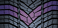The V shape design of the pattern provides a high level of aquaplaning resistance and improves snow performance.