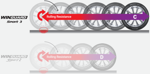 Enhanced rolling resistance has improved the EU Label Energy Grade from D to C, without compromising winter performance.