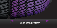 The wide pattern design increases the contact area, improving traction and handling performance.