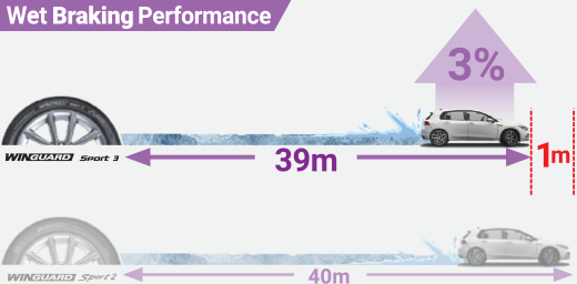 By increasing the number of pitches, the WINGUARD Sport 3 enhances snow performance, delivering improved traction and control on snowy roads.